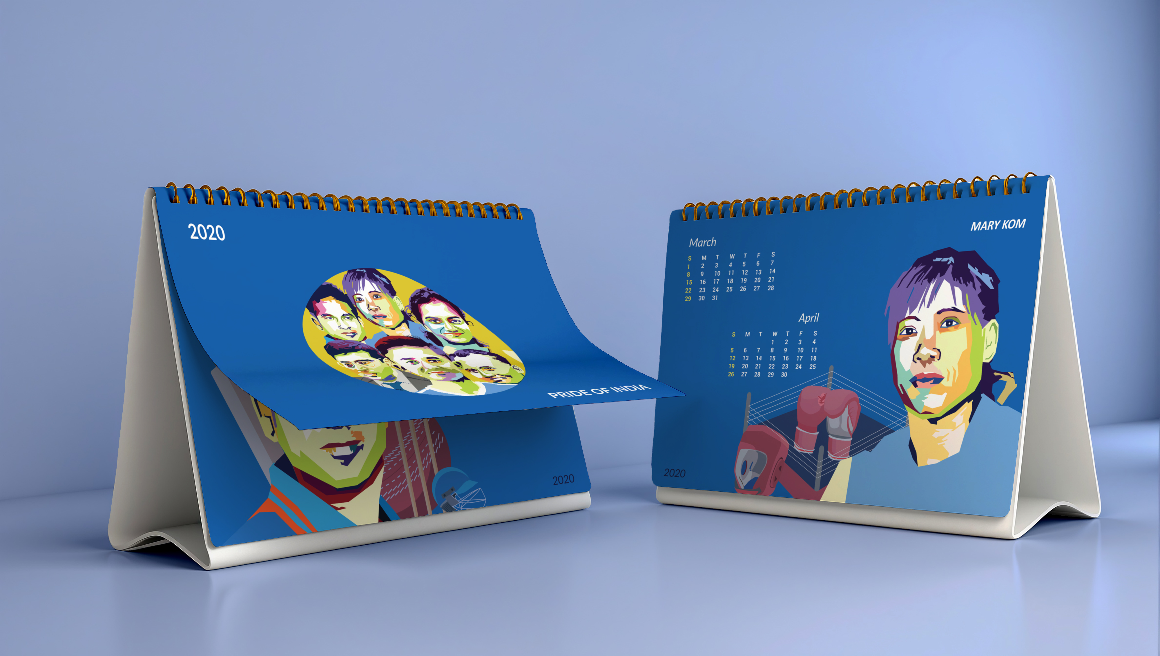 Desk calendar theme is based on the India’s talented and popular sports player. Showcasing the portrait illustrations with technique WPAP art. WPAP stands for Wedha’s Pop Art Portrait is a style of pop art popularized by Wedha Abdul Rashid. WPAP is a Cubist inspired style of geometric pop art. It is easily recognizable by their sharp lines and wild, vibrant color schemes.
